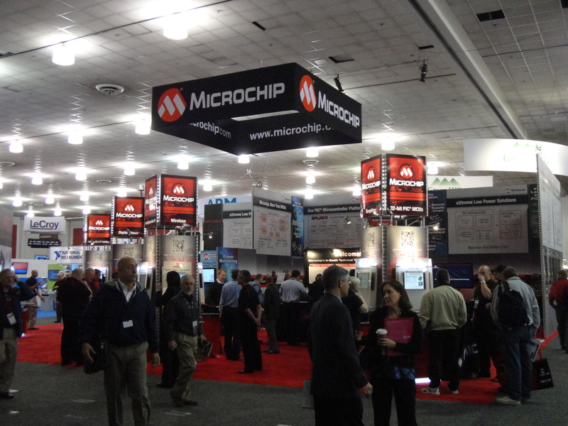 O centro de exposições abriu às 11:30, e não saí mais de lá. Esqueci que estava rolando uma conferência com mais de 50 palestras lá fora. Todas as principais empresas da área de embarcado estavam lá. Tentei bater um papo com cada uma delas, incluindo NXP, TI, Freescale, Renesas, Atmel, Microchip, NI, Micrium, Mentor Graphics, Wind River, Intel, AMD, IAR e ARM.